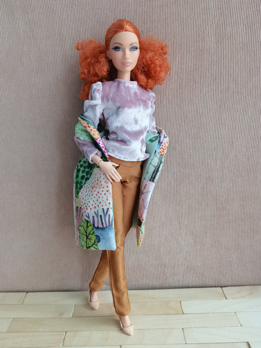 Я закончила новый образ для Хайди. Наряд получился сборная солянка😁 Шился он не на вдохновении, а лишь бы закончить. Показываю, что получилось в итоге. Брюки шила по платной выкройке. Изначально их я раскроила для первого теплого образа для Хайди, но не стала шить, так как вспомнила, что у меня уже есть подходящие брюки. Ткань интересная, похожа на репсовую ленту. И цвет очень красивый и тёплый. Жилетку сшила по выкройке из журнала. Я как-то упоминала тут, что секрет конструирования выкройки не скажу. Так вот. Оказалось, что идея требует доработки. Нельзя просто взять выкройку на человека и уменьшить до размера куклы, потому что пропорции куклы и человека не совпадают😊 Это я узнала сегодня. А до этого все гадала, почему получается не так идеально как хотелось. Жилетка получилась широковатой, думаю подойдет и пышке. И благодарю моду за любовь к оверсайз в наше время😁 Джемпер так же шила по выкройке из журнала. Джемпер получился в размер, так как меня интересовали только рукава. Они