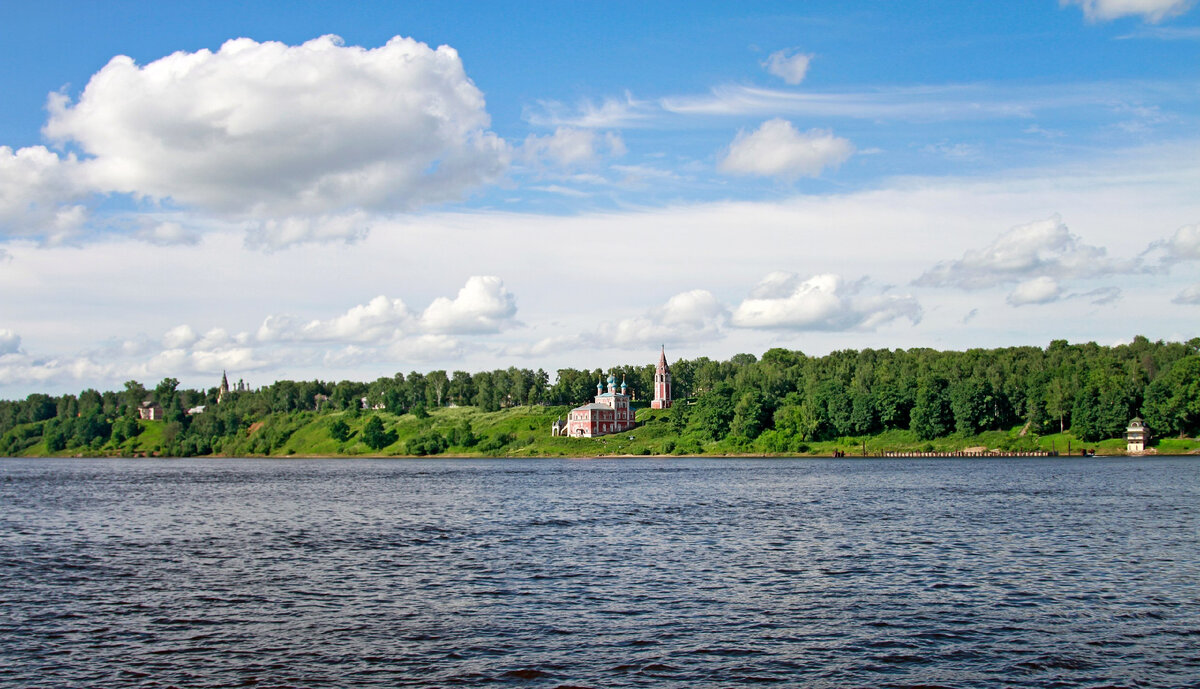 Волга тут еще не широка, но берега уже высокие, и по первоначальному проекту Ярославской ГЭС (до ее переноса в Рыбинск) затоплению подлежали в том числе и эти места.
