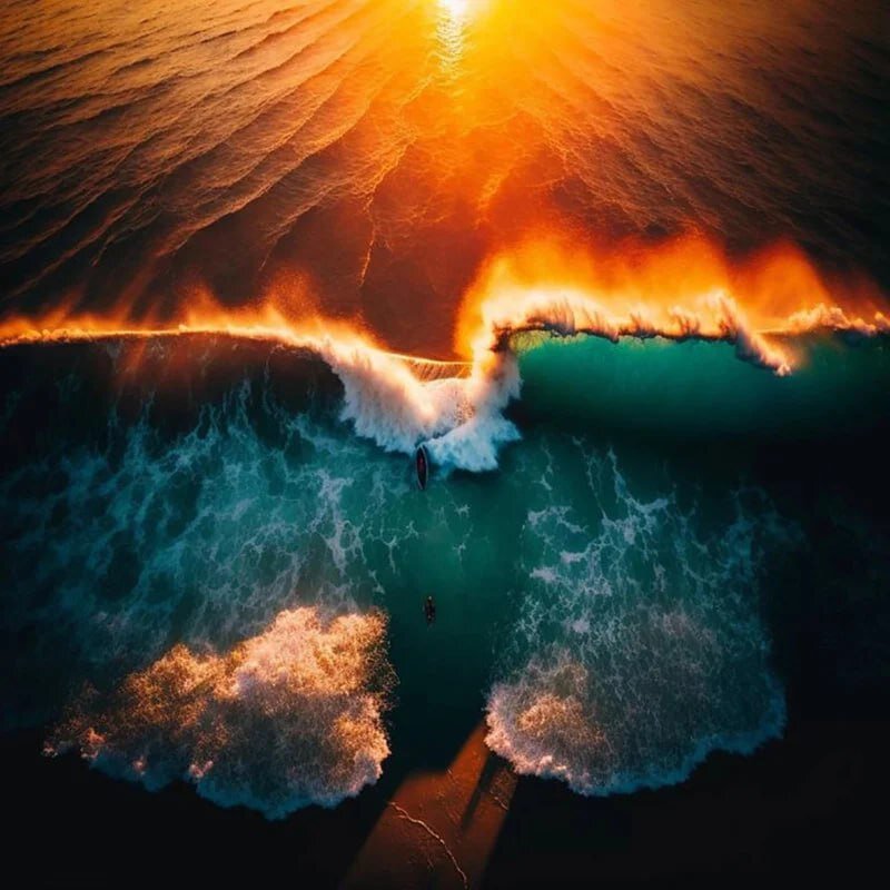 Этот снимок с дрона, на котором пойманы два несущихся навстречу друг другу сёрфера, был признан лучшим на фотоконкурсе, регулярно проводимом австралийской компанией DigiDirect. Эксперты сочли его достойным главного приза, однако победитель от награды отказался. Но, как вы уже догадались, на самом деле этот снимок был сгенерирован нейросетью компании Absolutely Ai, а вы бы смогли отличить его от настоящих снимков, если бы не знали о его происхождении?