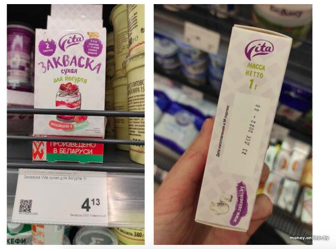 Вы можете найти этот продукт в молочном отделе супермаркета. И если решите брать килограмм, то он действительно обойдется в 4 тысячи рублей (даже больше — в 4130 рублей). Подробнее о товаре рассказывает Onliner. Речь идет о сухой закваске для приготовления йогурта: 4 рубля 13 копеек за упаковку в 1 грамм. Cостав — Streptococcus salivarius subsp. Thermophiles и Lactobacillius bulgarius. Производитель указывает: «Количество молочнокислых микроорганизмов не менее 1×10(9) КОЕ/г». В упаковке два пакетика закваски. Предполагается, что, добавив молоко, из каждого вы получите от 1 до 3 литров йогурта. Вот что Onliner сказали в «ЭкоОптФуд» о цене на закваску: «Одной упаковки в 1 грамм за 4 рубля вам хватит для приготовления 6 литров йогурта — натурального полезного продукта. Из 1 килограмма закваски вы бы приготовили около 60 000 литров йогурта. Такого объема йогурта вам бы хватило до конца жизни, и, можно предположить, 4 тысячи рублей за такой объем продукта — это оправданная цена. Тем более ч