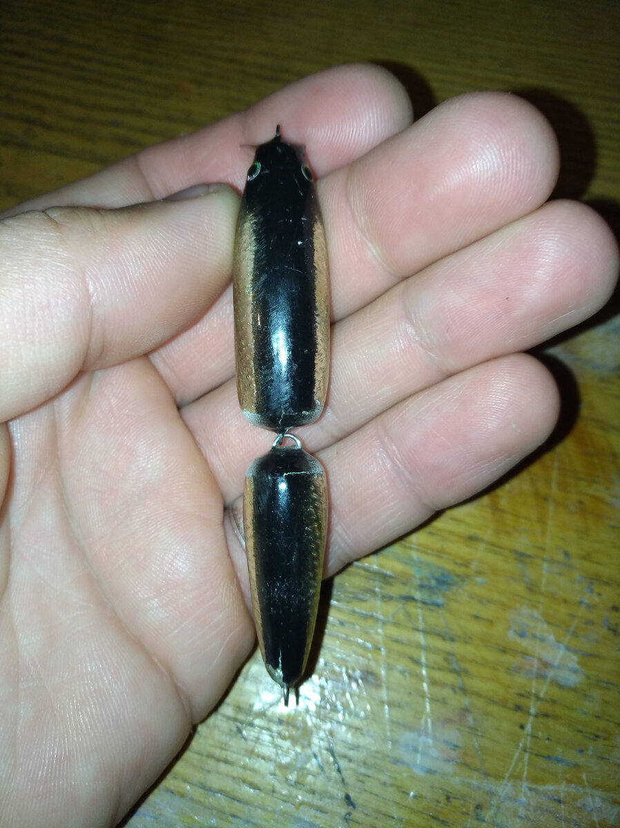 — первый воблер, который был сделан из разных пород дерева — хвост в березе, а основа — осина