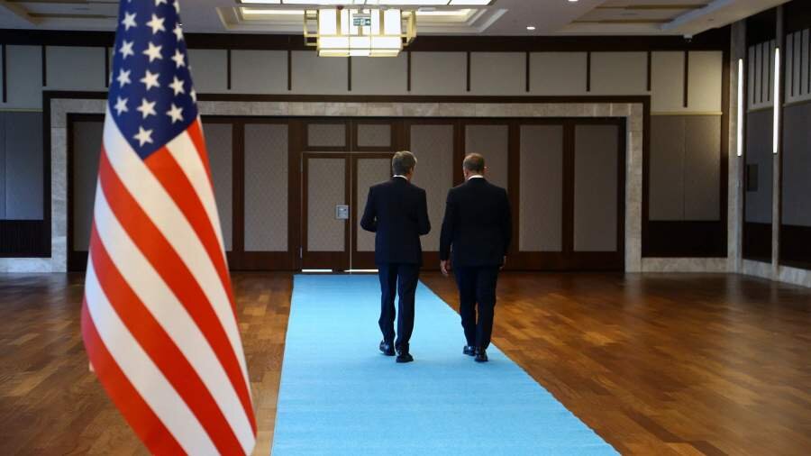 Для приехавшего в Анкару 20 февраля Энтони Блинкена вопрос расширения НАТО также был в числе приоритетных. Однако в конечном итоге он был сдвинут вниз по списку после позиции республики по конфликту на Украине и чувствительными моментами двусторонних отношений. В официальном пресс-релизе государственного департамента сказано, что Блинкен и Эрдоган обсуждали поддержку Украины, а также «необходимость более тесного сотрудничества по двусторонним вопросам, в том числе в сферах обороны, энергетики, торговли и коллективной безопасности». Однако, судя по заявлениям, сделанным по итогам встречи, ни по одному из этих пунктов не было достигнуто полного взаимопонимания.