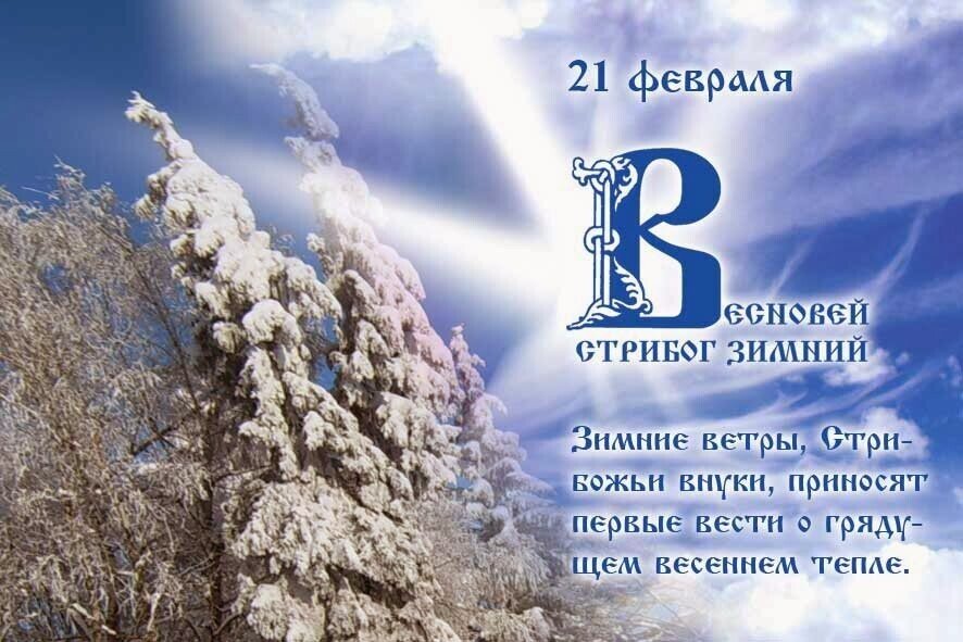 21 февраля Славяне отмечали Стрибог Весновей (Стрибог Зимний) - день, когда зимние ветры, Стрибожьи внуки, приносят первые вести о грядущем весеннем тепле, когда начинали дуть первые тёплые ветра, сменяя холодные зимние.