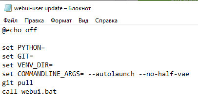 @charhoal, @ilinmaru, Достаточно просто попросить и немного подождать ᕕ (͡° ͜ʖ ͡°) ᕗ Потому что, потому что Всех нужнее и дороже, Всех доверчивей и строже В этом мире доброта. В этом мире доброта. (Песня о доброте) м/ф «Приключения поросенка Фунтика» Итак, для генерации аниме арта любимого персонажа в Stable Diffusion нам понадобятся: 0) Видеокарта с 4+ Гб видеопамяти и 8+ Гб оперативной памяти (можно и на меньшем объёме рендерить, однако конечное разрешение не будет превышать 1000px, а время, требуемое на генерацию существенно увеличится); 1) Сама Stable Diffusion (для простоты работы используем билд от Автоматик1111: GitHub - AUTOMATIC1111/stable-diffusion-webui: Stable Diffusion web UI); 2) Модели: Anything и OrangeMix; 3) Удача VAE. Спасибо, @SkladNanogusei (можно использовать VAE от NovelAI или от авторов OrangeMix: VAEs/orangemix.vae.pt · WarriorMama777/OrangeMixs at main (huggingface.co)). Настраиваем webui-user.bat следующим образом: Параметр autolaunch отвечает за автоматическ
