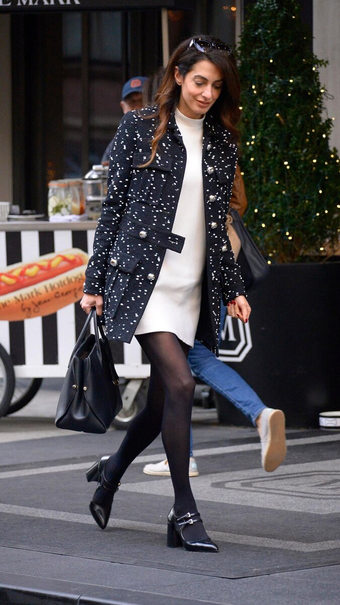 Амаль Клуни как всегда бесподобна. Адвокат и светская львица часто радует поклонников своими безупречными выходами, и этот — не исключение. Она появилась в мини-платье, напоминающем по форме трапецию, к которому подобрала черные колготки и лакированные остроносые туфли. Знаменитость дополнила образ принтованным укороченным пальто, объемной сумкой и очками. Читайте также на нашем сайте: Подписывайтесь на нас в Телеграме, чтобы быть в курсе последних новостей!