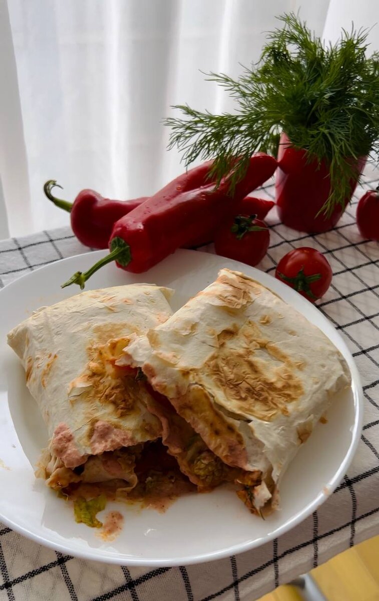 Сочная и ароматная шаурма с курицей - это настоящая классика уличной еды, которая завоевывает сердца гурманов по всему миру. А когда вы приготовите ее дома, вы почувствуете настоящую магию искусства кулинарии, смешавшись с традиционным вкусом, позволяющим вам наслаждаться этой вкусной закуской в уютной обстановке своего дома. В этом рецепте мы расскажем вам, как приготовить золотистую классику - домашнюю шаурму с курицей и свежими овощами, чтобы вы могли насладиться ее богатым вкусом и ароматом, когда захотите! ИНГРЕДИЕНТЫ: ЭТАПЫ ПРИГОТОВЛЕНИЯ: Готово! Приятного аппетита!