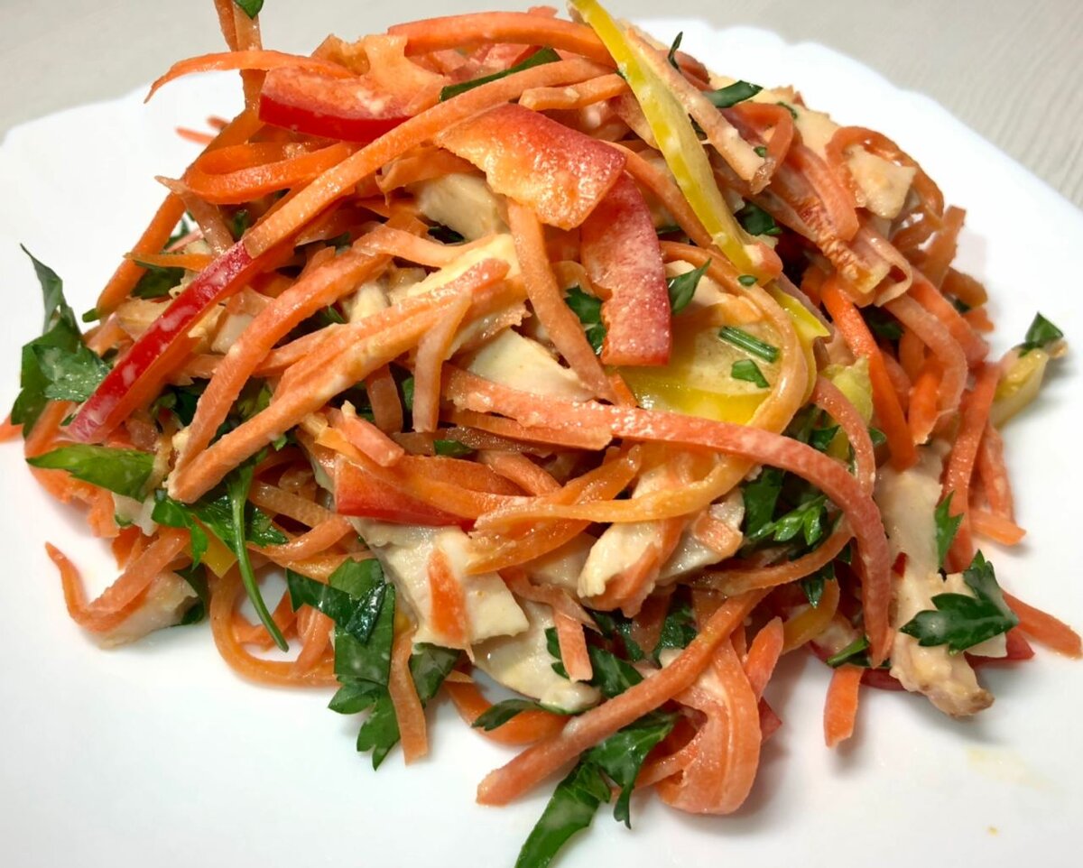 Неймоверно-вкусный, салатик с копчённой курочки и корейской морковкой!й