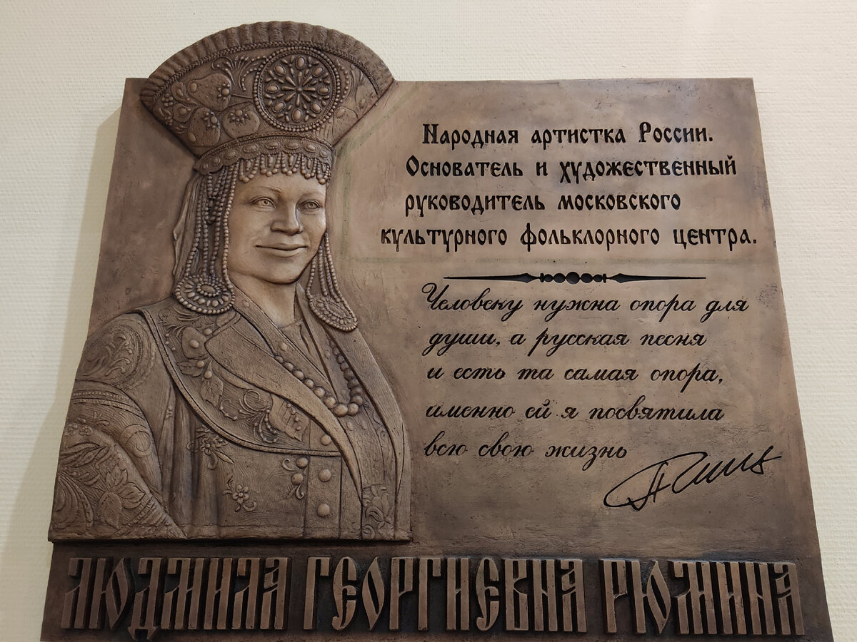 #303 Экспозиция в Фольклорном центре Людмилы Рюминой (Москва) посвящена создателю, первому художественному руководителю и главному режиссеру Московского культурного центра с 1999 по 2017 годы. Людмила Георгиевна Рюмина родилась в городе Воронеже 28 августа 1949. Став певицей, придавала большое значение пропаганде фольклорного искусства, воспитанию и обучению талантливой молодежи, работающей в жанре народной песни. Сама владела не только народным, но и академическим голосом. В 1999 году при поддержке мэра Москвы Юрия Лужкова и вице-мэра Валерия Шанцева Людмила Рюмина создала Московский культурный фольклорный центр, который разместился в бывшем кинотеатре «Украина» ( станция метро Багратионовская). В холле центра представлена коллекция Людмилы Рюминой. Основными экспонатами являются концертные костюмы. Очень интересна коллекция головных уборов. Кроме фольклорных нарядов, в коллекции находятся всевозможные награды, кубки, ордена, грамоты, которыми были награждены фольклорный ансамбл