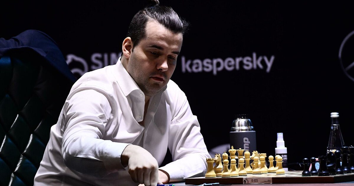 В Дюссельдорфе проходит шахматный турнир WR Chess Masters. В 6-м туре россияне Ян Непомнящий и Андрей Есипенко сыграли вничью. WR Chess Masters Дюссельдорф, Германия 6-й тур Ян Непомнящий (Россия) – Андрей Есипенко (Россия) – 0,5:0,5 Гукеш Доммараджу (Индия) – Нодирбек Абдусатторов (Узбекистан) - 0,5:0,5 Ян-Кшиштоф Дуда (Польша) – Винсент Каймер (Германия) - 0,5:0,5 Аниш Гири (Нидерланды) – Рамешбабу Прагнанандха (Индия) - 0,5:0,5 Уэсли Со (США) – Левон Аронян (США) - 0,5:0,5 Турнирное положение: Аронян – 4,5, Гукеш, Со – по 3,5, Непомнящий, Есипенко – по 3, Дуда, Гири, Абдусатторов, Прагнанандха, Каймер – по 2,5.