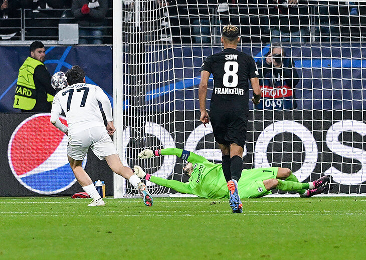 Блеснул после незабитого пенальти. «Наполи» почти тайм молчал с «Айнтрахтом» в первом матче 1/8 финала Лиги чемпионов и получил классный шанс на 35-й минуте – пенальти. Бить пошел Хвича. Незабитый пенальти: пробил в угол – вратарь достал Ирвинг Лосано после шикарной передачи от Джованни Ди Лоренцо пробил в штангу, Виктор Осимхен бежал к мячу и получил подножку – пенальти! Но Хвича запорол: пробил в левый угол, а Кевин Трапп вытащил. Дотянулся и спас «Айнтрахт». Не только ошибка Хвичи, но и мастерство кипера. Кварацхелия не реализовал лишь второй пенальти в карьере, прошлый – еще за «Рубин». В октябре 2021-го не забил «Нижнему Новгороду» (0:1). Но Хвича и не так часто бьет: пять реализованных, два из них уже в «Наполи». Неудачный удар Хвичи только завел «Наполи»: уже через пять минут Лосано вбежал в штрафную, вырезал пас во вратарскую на Осимхена, и нападающий четко замкнул. Голевая пяткой: откинул партнеру в штрафной – так утвердили победу Во втором тайме Квара заставил забыть про пена