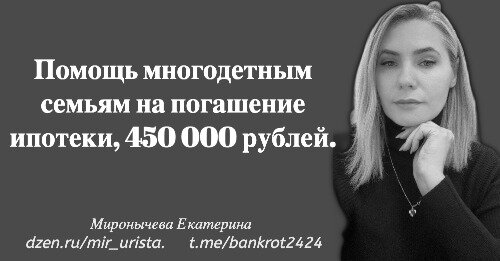 Помощь многодетным семьям на погашение ипотеки, 450 000 рублей.
