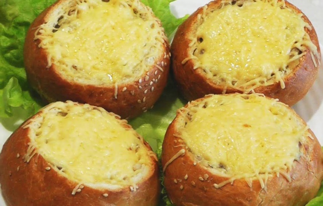 Сегодня я расскажу вам рецепт приготовления жульена из рыбы в булочках в микроволновке . Готовится быстро , получается вкусно . . Блюдо получается ну очень вкусное . Но это только для любителей рыбы . Для приготовления жульена нам понадобится : Филе любой рыбы 500 гр Булочки для гамбургеров 4-5 шт Лук 2 шт ( средних ) Мука 1 ч.л Сметана 7-8 ст.л Вода кипячёная 50 мл Сыр 50-60 гр Лук чистим , режем тонкими четверть кольцами . Жарим на разогретом растительном масле 1-2 минуты . Лук должен стать мягким и прозрачным . К готовому луку кладём муку , перемешиваем . Филе рыбы режем на небольшие кусочки и обжариваем на небольшом количестве растительного масла , 2-3 минуты . У булочек срезаем верхушку , выбираем мякиш и оставляем стенки толщиной около одного сантиметра . На дно булочки кладём лук , перемешанный с мукой . Затем кладём обжаренную рыбу . Кладём специи , солим . Сметану смешиваем с водой . Заливаем этой смесью лук и рыбу , перемешиваем . Лучше перемешивать чайной ложкой .