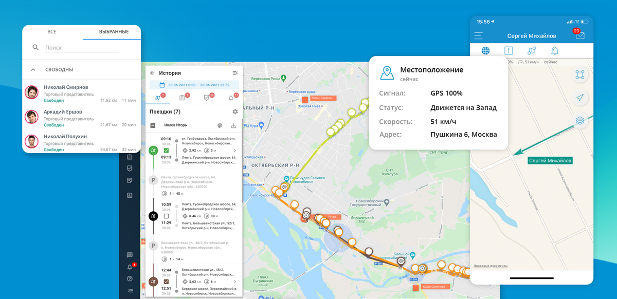 Информация о местонахождении сотрудников обновляется в реальном времени, а значит, вы будете получать актуальные данные о том, где ваш сотрудник, и в каком направлении он движется, если находится в пути.