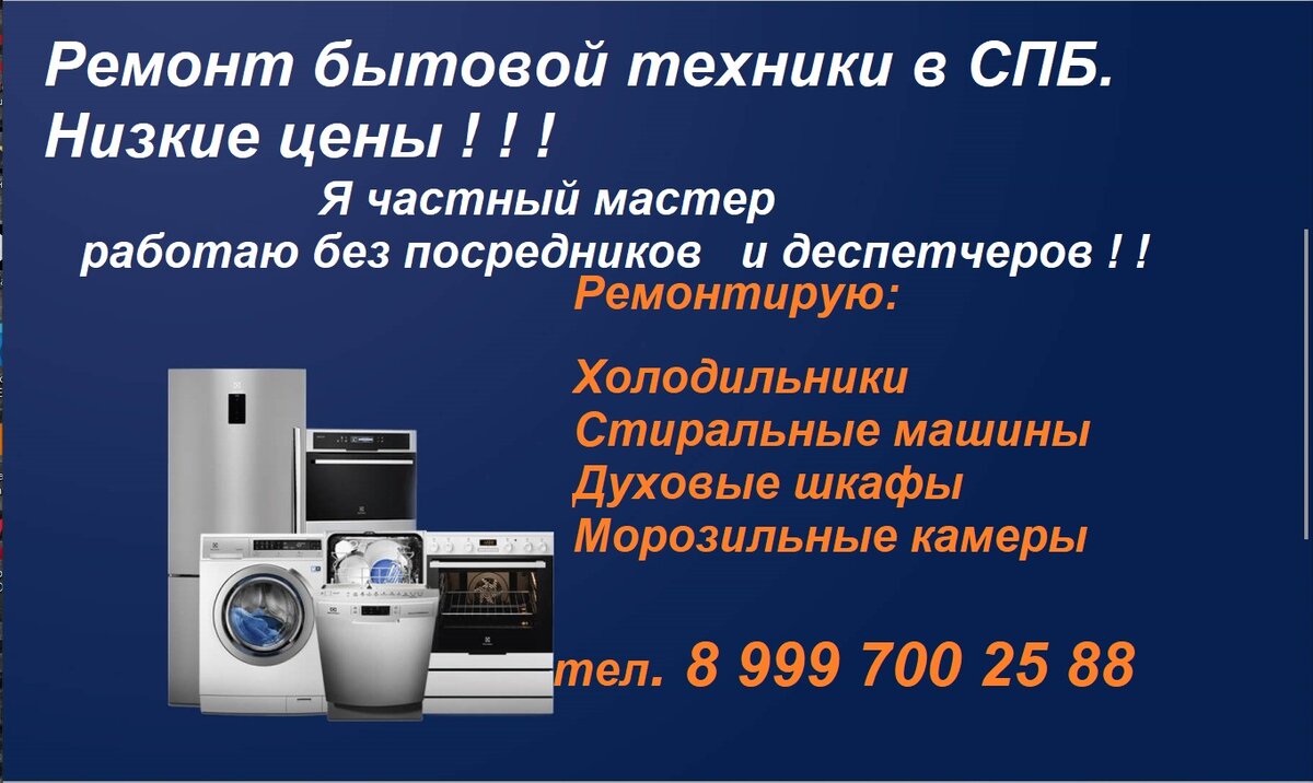Ремонт бытовой техники в Санкт-Петербурге от частного мастера по низкой цене.