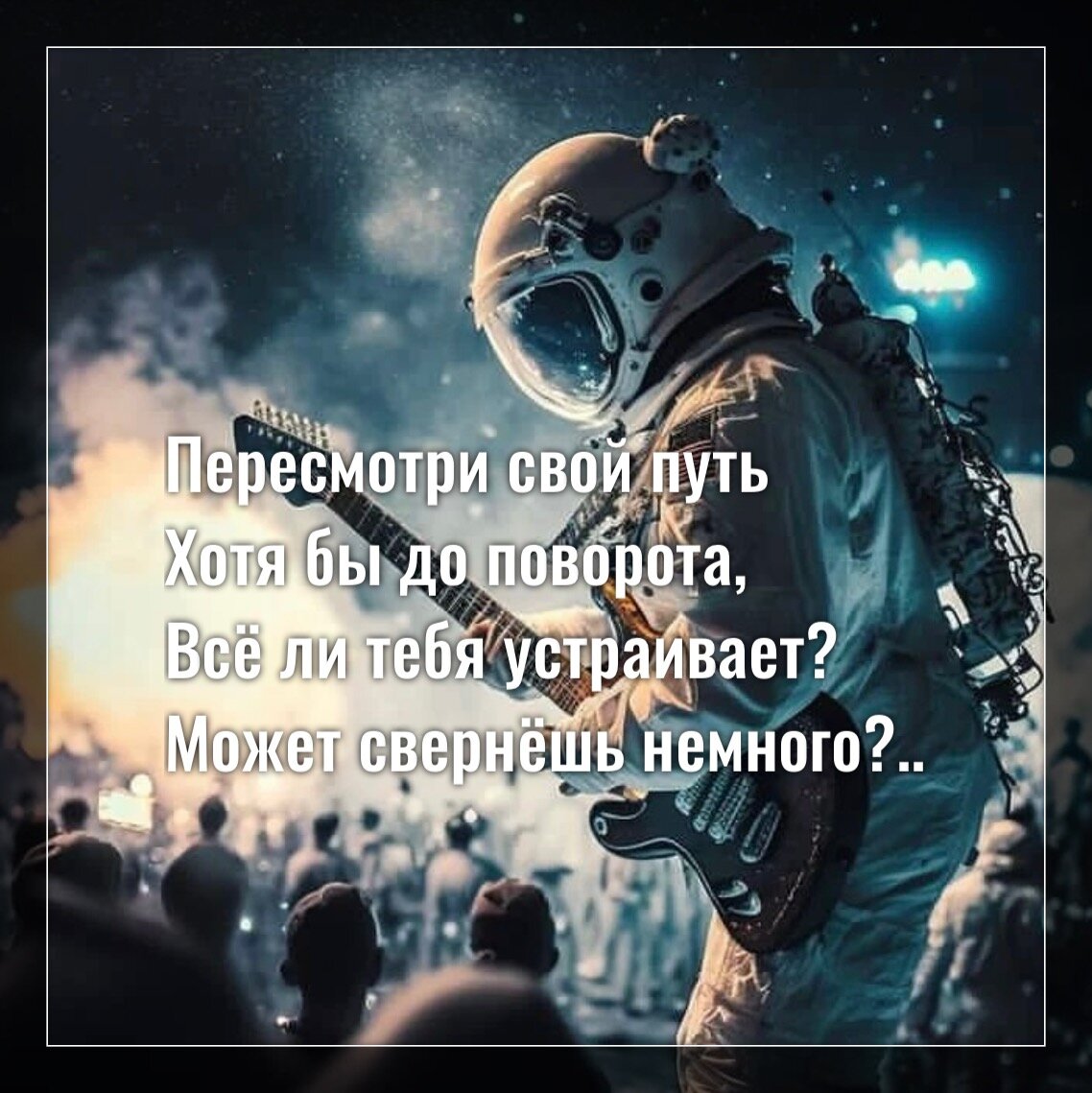 Пересмотри свой путь Хотя бы до поворота, Всё ли тебя устраивает? Может свернёшь немного? Никто тебя не осудит, Это же жизнь ТВОЯ, Так часто себя ломаешь В угоду кому-то зря. Задумайся, как часто Боясь от родных осуждения, Ты принимал совсем Неправильные решения, Все вокруг были довольны, А ты от себя отдалялся, Тем самым, рождая обиды, И больше не возвращался Уже к своим смелым желаниям, «А вдруг меня кто-то осудит?!» Все блоки в твоей голове, Претензий всегда столько будет! А смысл тогда воплощаться? Делать, как ты не хочешь, Позволь себе быть собой, Развивай Душу как только можешь! Не важно, кто, что говорит, Это мнение с их колокольни, С твоей же мир точно другой, А ты там счастливый, довольный. Наставники, Высшее Я - Вот где подсказки важные, Гони из своей головы Негативные мысли и страшные.