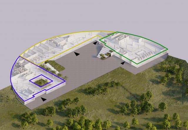Специалисты предложили применить при их строительстве приём формирования строений за счёт своеобразных смещённых пикселей. Благодаря необычной форме и малой этажности они должны идеально вписаться в ландшафт и существующий перепад высот.