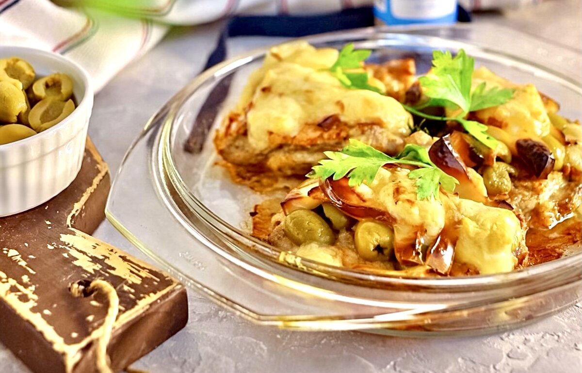Мясо, запечённое с оливками и колбасным сыром от Маргариты Фуряевой