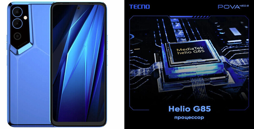 Компания Tecno активно завоевывает российский рынок, предлагая интересные решения за небольшие деньги. Ее смартфоны активно соперничают с доступными гаджетами от Redmi и Realme, не уступая им ни в производительности, ни в камерах, ни в автономности. Tecno POVA Neo 2, особенно с учетом его скидки, лучший вариант для покупки на данный момент. Подкупает его необычная внешность, которая ярко выделяется на фоне конкурентов, копирующих «яблочные» девайсы. Материал корпуса — пластик, а в комплекте имеется защитный силиконовый чехол на первое время и защитная пленка (ее придется наклеить самостоятельно). Экран: 6,82 дюйма, IPS-матрица, разрешение HD+ (1640×720). Рамки небольшие, но есть стандартный «подбородок», присущий всем бюджетникам. Из реальных достоинств — возможность выбора частоты обновления 60 или 90 Гц. Достаточно яркий с неплохой цветопередачей дисплей. За счет HD+ разрешения и весьма мощного 8-ядерного процессора Mediatek Helio G85, Tecno POVA Neo 2 с легкостью переваривает все со