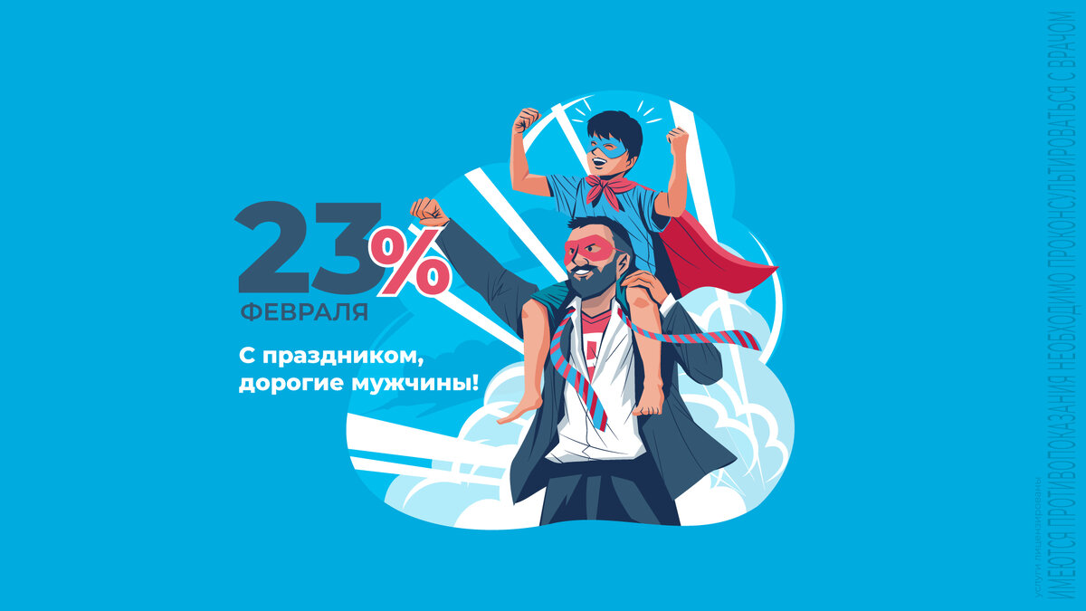 Время позаботиться о наших мужчинах! К 23 февраля дарим скидку 23% на все анализы – для отцов, мужей, сыновей, дедушек, коллег, друзей и всех дорогих мужчин!* Проверьте мужское здоровье сами, пройдите профилактику или сдайте анализы, которые давно откладывали. Каталог СИТИЛАБ насчитывает более 3900 видов исследований – для любых потребностей и каждого возраста. При необходимости специалисты сервиса «Спроси врача» помогут выбрать подходящие исследования, проконсультируют по правилам подготовки и сдачи, а после расшифруют результат. Большинство медицинских центров СИТИЛАБ и служба выезда на дом работают в праздники. Уточнить изменения в режиме работы можно на сайте https://citilab.ru/medcentres/ на странице каждого медцентра или по тел. 8-800-100-36-30. Поздравляем мужчин с праздником, желаем крепкого здоровья и ждем в СИТИЛАБ в эти длинные выходные с 23 по 26 февраля! *Акция проводится с 23.02.23 по 26.02.23. Скидка распространяется на медицинские анализы, кроме исключений, перечисленн