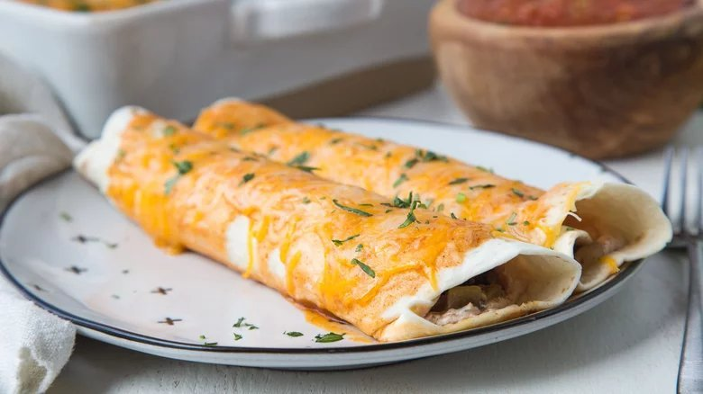 Это традиционнoe блюдо мексиканской кухни, представляет собой рулеты из лепешек с мясной начинкой. Но энчилада не фаст-фуд и не перекус, а полноценный горячий обед или ужин. Ингредиенты: Как готовить: 1. Репчатый лук измельчить и обжарить с фаршем на растительном масле. 2. Добавить к говядине рубленный кубиками болгарский перец. Томить в течение 6-7 минут или до тех пор, пока мясо не будет готово. Соль и перец по вкусу. 3. Разогреть духовку до 200 градусов. 4. Два помидора натереть на терке или припустить кусочками на сковороде и затем пюрировать блендером. Убрать кусочки, смесь должна быть похожей на томатный сок, только сильно разбавленный водой. 5. Оставшийся помидор нарезать мелкими кубиками, соединить с томатной пастой, острым перцем и сметаной. Можно добавить сухой зелени, острый стручковый перец и черный перец по вкусу. Перемешать соус энчилада до однородности. 6. Вылить несколько столовых ложек томатного соуса на дно формы для запекания. 7. На лаваш (лепешка, тортилья) выложить