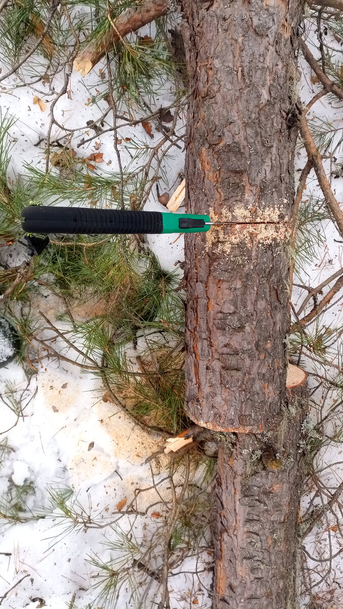 Однажды, прогуливаясь по зимнему лесу до своей стоянки. Мне пришла в голову одна мысль. А почему бы себя не попробовать в резьбе по дереву. Проходя мимо я увидел лежащее поваленное дерево. Тут же достал из рюкзака свою маленькую складную ножёвку " СЛЕДОПЫТ" и отпилил чурочку длинной 40см. И отправился дальше по зимнему лесу до своего лагеря. Дошёл до места, напилил дров и развёл костёр. На улице было очень холодно. Костерок меня согрел и напоил горячим чаем. Достал топорик и начал впервые вырезать посудину. Инструмент я ни разу не держал в руках для резьбы по дереву. Но решил заказать из под небесной вот такой нобор Первым делом по возможности всё самое сложное чтоб не резать ножом, я обтесал топориком. И дальше клюкорзой уже принялся выгребать из нутри чурочки древесину. Буквально 40 минут работы. И моя первая чашка была уже готова После я пожарил окушков на огне и положил в эту самую чашку. Кушать из неё было очень приятно. Так как сделал буквально на коленках. Самому было очень прия