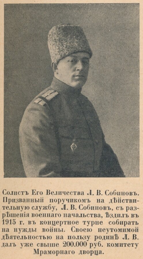 Ещё одно яркое отличие, - Собинов был участником Первой мировой войны. Пока Шаляпин кутил по ресторациям и двоеженствовал Собинов родину защищал. (позволил себе поставить его фото не в сценическом костюме, а в военной форме. Сравните с "Портретом Шаляпина в шубе")
