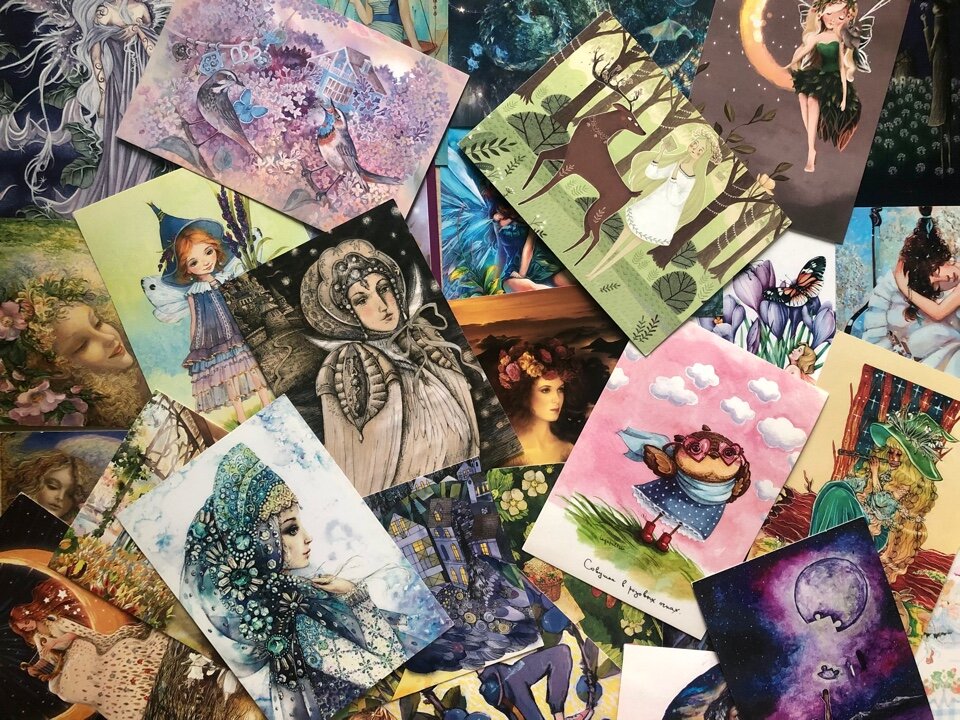 Где феи, там и единороги. Открытки из Оренбурга, Ярославля и… Не только художники заклеены, но и последнего города на штемпеле не разобрать, такое часто бывает. Поэтому многие посткроссеры просят писать, откуда открытка. А мне остается указывать те имена художников и названия их работ, которые возможно прочитать.