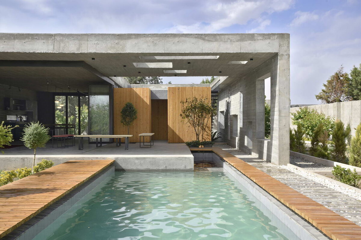 Проект был определён заказчиком как небольшая вилла для отдыха на выходных с бассейном, который можно использовать для хранения воды и купания. Место, где его закрытая часть может использоваться зимой, а летом открытые части играют роль навеса. Вид на сад был самым важным требованием заказчика в процессе проектирования. Текстура растительности и существующие типы деревьев в саду привели архитекторов к тому, чтобы максимально сохранить растительное окружение и попытаться сделать проект более похожим на сад, а не на виллу. Первоначальная концепция проекта формировалась из предпочтений клиента, формы участка и существующих деревьев в саду. Коробка как простая симметрия с возможностью исключения двух элементов (нижней и верхней) делала проект прозрачным как с северной, так и с южной стороны и давала полный обзор всех пространств. Создавалось впечатление, что внутри сада поставили коробку, и сад двигался сквозь неё. Небольшие функции, стремящиеся к большей конфиденциальности, были определ
