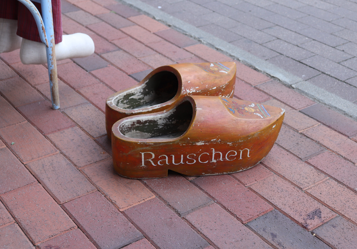 В городке Светлогорск около одной из сувенирных лавок стоит большой деревянный башмак с надписью «Раушен». Так Светлогорск назывался до того, как часть Восточной Пруссии стала советской и все города получили новые названия. Ну а деревянные ботинки - их на побережье Балтики и вообще в Европе носили испокон века и до недавних пор. Если, к примеру, посмотреть фотографии голландцев, то в похожей обуви они еще в начале XХ века ходили запросто. Деревянная обувь (которая в разных странах называлась по-разному, поэтому пусть будут кломпы - голландское название ботинок, похожих на те, что стоят рядом с магазином в Светлогорске) была настолько популярна и востребована, что даже существовала своя гильдия, мастера которой занимались производством именно деревянных башмаков. А гильдия это что? А это, как бы мы сейчас сказали - ГОСТы. Потому что раз ты в гильдии, то значит обязан делать не хуже определенного стандарта качества, а заодно не производить больше установленной нормы и продавать дешевл