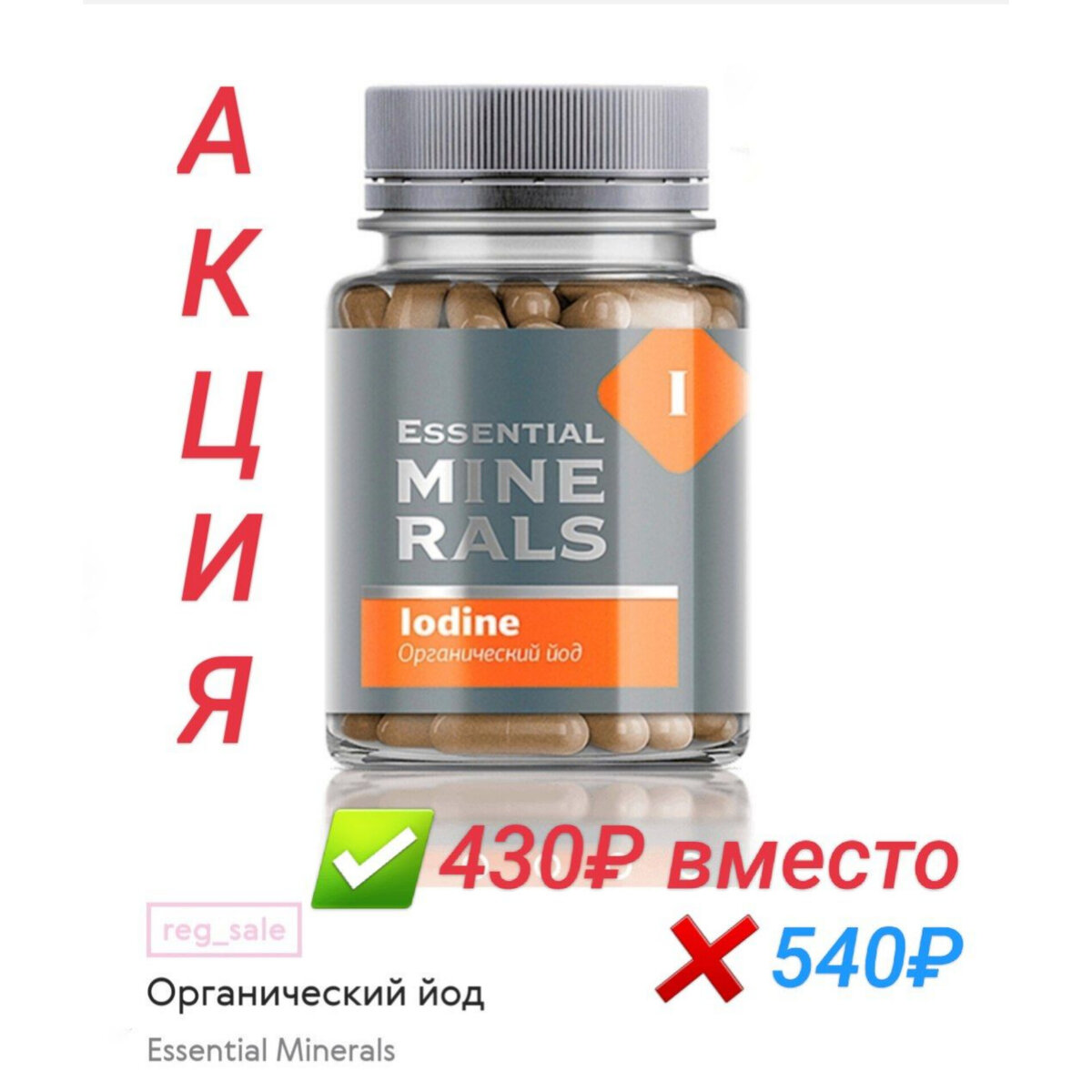 ❗❗❗ 🅰🅲🆃🅸🅾🅽 Органический йод Essential Minerals 60капс-540р Состав: 🔹Порошок из корней родиолы, 🔹экстракт фукуса. 💛 «Органический йод» Essential Minerals в 1 капсуле содержит йод в количестве, соответствующем средней дневной потребности взрослого человека. ⠀⠀ Акция. До конца этой недели можно приобрести за 430 руб - выгоднее на 110 руб❗ ▶️ Йод – один из тридцати самых важных микроэлементов в нашем организме. Основная роль йода – участие в синтезе гормонов щитовидной железы. Они отвечают за большинство обменных процессов. При этом распознать дефицит йода не всегда даже возможно! А длительная нехватка йода закончится проблемами: 🔹с сосудами, 🔹сердцем, 🔹пищеварением, 🔹ожирением 🔹неврологией, 🔹отставание в физическом и умственном развитии, особенно у детей. Задуматься о количестве йода в своем рационе стоит, если у вас: ✔ вялость, сонливость, упадок сил; ✔ сбои в иммунной системе; ✔ частые и повторяющиеся простудные, вирусные, пара