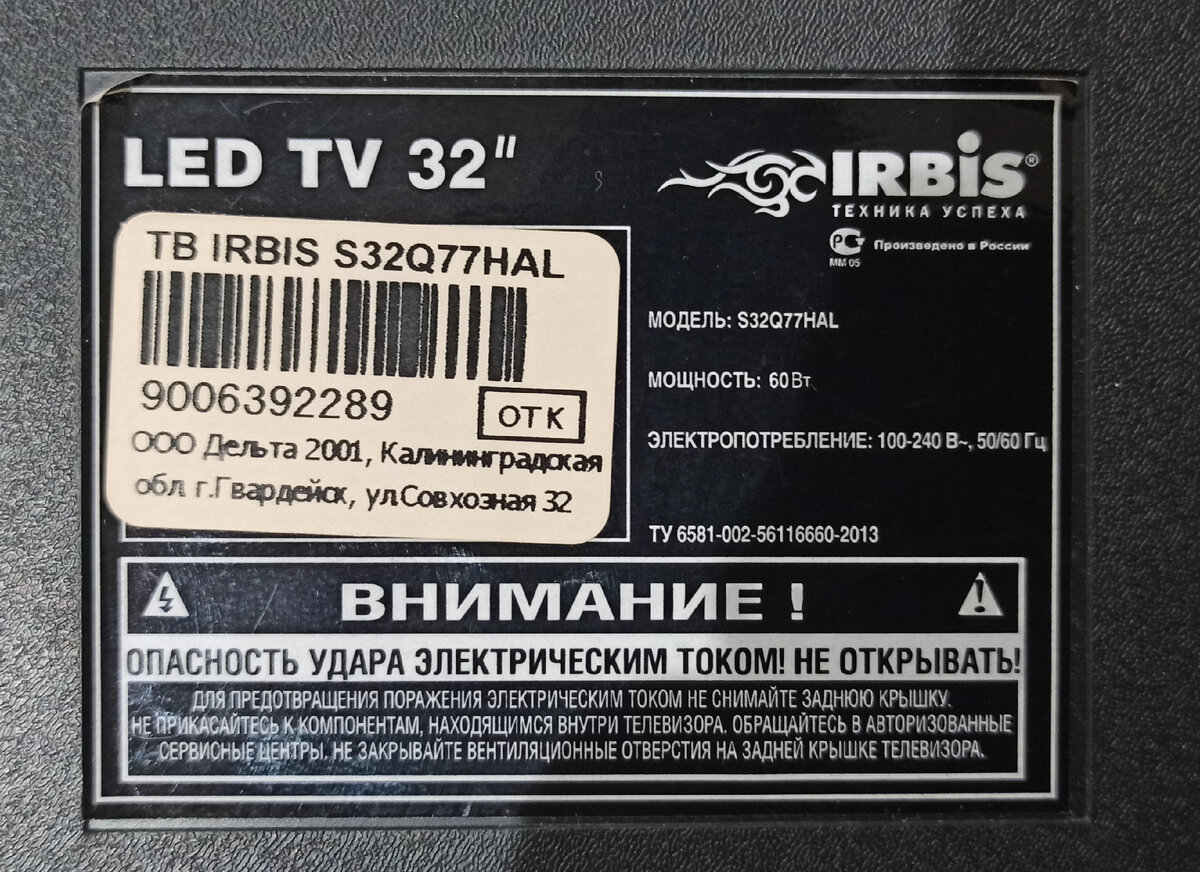 Телевизор IRBIS S32Q77HAL при включении в сеть ни какой реакции.