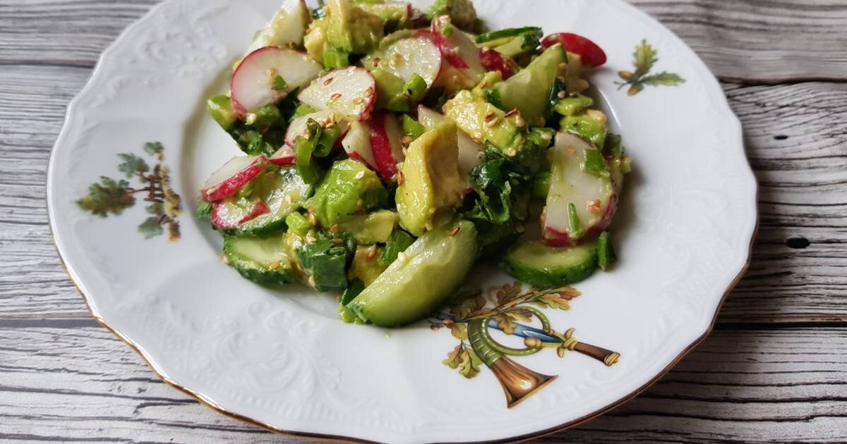 Салат с редисом, авокадо и кунжутом Ингредиенты: Инструкции: Этот салат содержит редис, который богат витамином С и антиоксидантами, а авокадо - источником здоровых мононенасыщенных жиров. Кунжут также является богатым источником полезных жиров, а лимонный сок может помочь снизить уровень холестерина в крови. Автор статьи: Валентин Соин