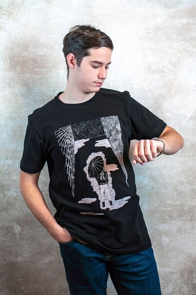 Переходите по ссылке и выбирайте понравившуюся вещь! Цвет: черный Состав: 90% - хлопок, 10% - лайкра Плотность: 195 г. Размеры: S(46), M(48), L(50), XL (52), XXL (54) Уточняйте наличие размеров Лимитированный выпуск линейки футболок CAPER -NAVY- Мужская/женская футболка «Странник» Крой оверсайз, прямой спортивный силуэт Качественные европейские нити, усиленные двойные швы Нанесения выполнены европейскими водными красками вытравлением в ткань Художник Сергей Чернышов Европейская ткань, кулирная гладь с лайкрой, высшее качество пенье Пошив и печать на ведущей российской фабрике Made in Moscow Тема странника отсылает нас к поэзии русской рок-музыки 90-х годов Переходите по ссылке и выбирайте понравившуюся вещь!