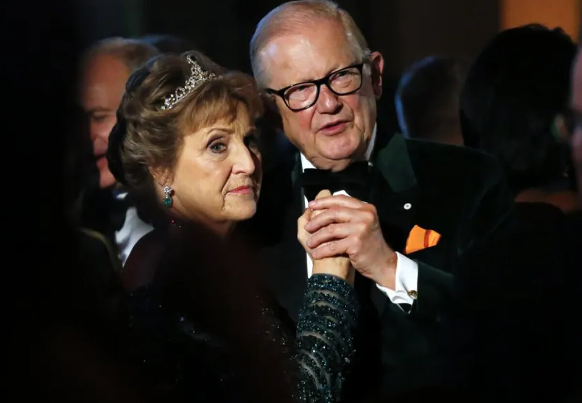 Посмотрите, как Нидерландская принцесса Маргарита кружит в танце с профессором Питером ван Воллеховеном на балу в Нью Йорке. Мне кажется, что несмотря на возраст, принцесса выглядит женственно и грациозно. А ведь в 2016 году ей было уже за семьдесят. Весь образ безупречно подобран, но лучше всего его подчеркивает величественная изумрудная тиара. Маргарита Франциска Нидерландская приходится младшей сестрой королеве Беатрис, родной теткой нынешнему королю Виллему-Александру. Она восьмая в очереди на нидерландский трон. Совсем недавно принцесса Маргарита отметила свой восьмидесятый день рождения. Как представительница одного из богатейших королевских домов Европы, она является обладательницей внушительного количества драгоценностей, среди которых есть поистине уникальные экземпляры. Но вернемся к балу о котором писала выше. Осенью 2015 года принцесса и ее супруг муж Питер ван Волленховен отправились в Нью-Йорк, чтобы посетить ежегодный бал Питера Стайвесанта. Это мероприятие позволяет сов