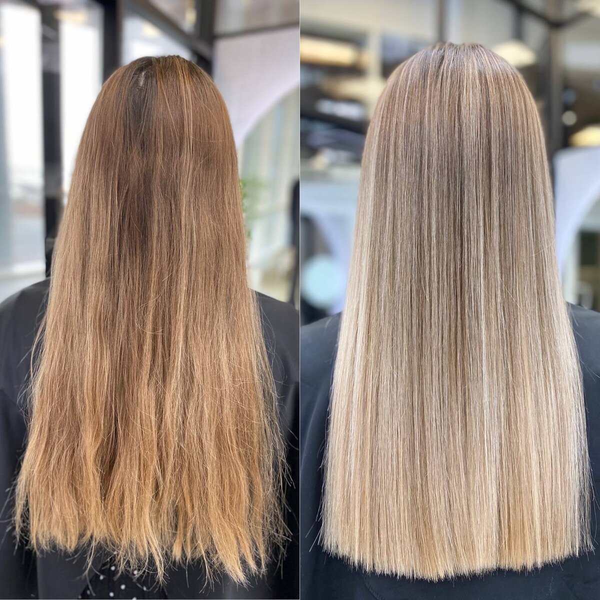 Когда кажется, что выхода нет, мы стараемся его найти. К нам обратилась девушка с запросом: "Хочу избавиться от рыжего подтона!". Желаемый цвет был - прохладный натуральный оттенок. Рецепт: Работа в слоях. 1. Осветляем первый слои, работа с повышением % окислителя. Крем блич (мягкий порошок) + плавное повышение с 3% до 4,5% 2. Второй слой, работа перманентом на косметической базе: 6.19+6.0+6.11 (1:1:1) на 3% (1:1) 3. Цветовая баня 9.3 + 1,5%+шампунь 4. Тон: Длина: 9+8.17 на 1,5% (1:2) 🧬нумерация🧬 7-фиолет 1-пепел 9-зелёный Как часто сталкиваетесь с такими случаями? В чем заключается трудность? В благодарность за внимание к публикации дарю бесплатный доступ на свои онлайн-семинары по колористике. Вам необходимо: 1. Перейти по ссылке ниже 2. Выбрать актуальную для вас тему ("Смывка из черного", "7 секретов блонда", "Цветовые бани" и др.) 3. Зарегистрироваться на семинар ВЫБРАТЬ СЕМИНАР И ЗАРЕГИСТРИРОВАТЬСЯ (нажмите на текст) Прочесть другие публикации канала можно по ссылкам ниже: Вы