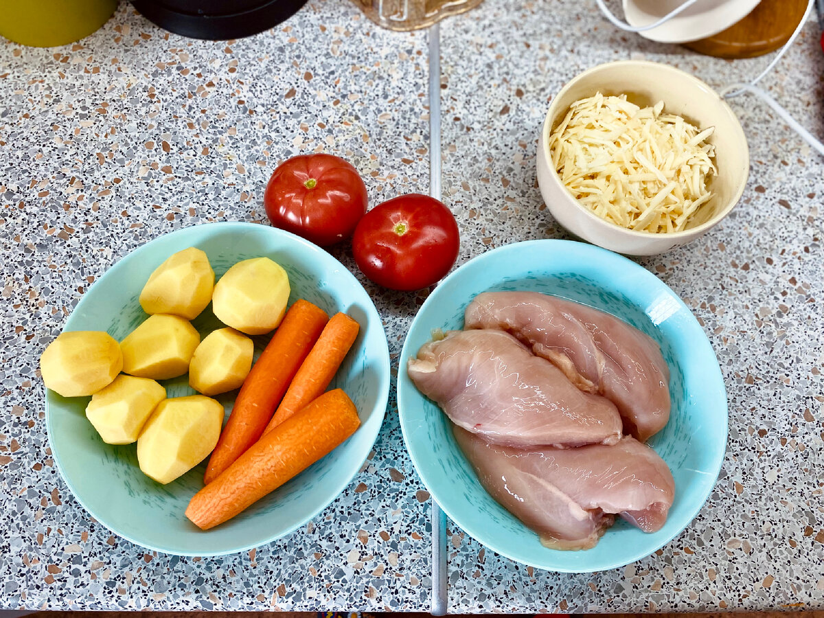 Рецепт рассчитан на 4 средние лодочки, так по пропорциям смотрите сами, как вам необходимо! Ингредиенты: Способ приготовления: 2. Натираем морковь, помидоры и картошку нарезаем тонкими круглишками. Картошку и курицу немного помаринуем в соли и специях по вкусу, у меня паприка. 3. Тушим морковь на сливочном масле на среднем огне, добавляем томатную пасту 100мл воды и соль, сахар по вкусу. Тушим пока вода немного выпарится, но не до конца. 4. Из фольги формируем такие лодочки, как на фотографии. 5. На дно каждой лодочки выкладываем тушенную морковь, она будет служить подушкой для остальных продуктов. 6. По очереди выкладываем помидоры, картошку и курицу. Начинаем с картошки и стараемся закончить ей же. После этого отправляем все в духовку на 45 мин 150 градусов. После этого посыпаем сыром и отправляем еще на 15 минут на 120 градусов.