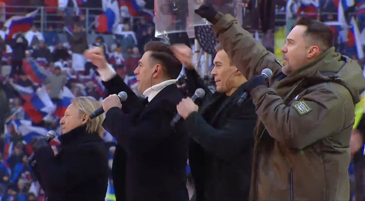 На стадионе «Лужники» в Москве 22 февраля прошел «митинг-концерт». На нем выступали актер Владимир Машков, певец Григорий Лепс, группа «Любэ», а также другие российские музыканты и артисты. На сцене спел и президент РФ Владимир Путин. Концерт не обошелся без казусов. Собрали самые яркие события. Читайте также: Байден в Варшаве обратился с посланием к россиянам - "Киев силен как никогда" Рэп с такими словами исполнил награжденный орденом Мужества за участие в войне в Украине сержант Николай Романенко (по мотивам песни «Катюша»). «И я не знаю, Катя, что будет дальше.