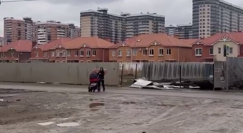 Жители ЖК «Любимово» обеспокоены отсутствием нормального пешеходного перехода и боятся за свою безопасность. Об этом 22 февраля стало известно из видеоролика, опубликованного в Telegram-канале «Краснодар Телетайп». Жители краснодарского микрорайона «Любимово», построенного буквально в поле, рассказали, что пешеходный переход рядом с домами и школой на улице Кирилла Россинского вызывает у них опасения. Сейчас он представляет собой дорожный знак, который видно водителям только с одной стороны, вокруг нет тротуара, а на дорогу не нанесена разметка. Кроме того, рядом лежит сломанный забор. Люди хотят, чтобы им сделали нормальную «зебру», но не знают куда обращаться – к управляющей компании, администрации или застройщику. Краснодарцы беспокоятся, что автолюбители могут не заметить на «пешеходе», например, ребенка или женщину с коляской. «Почему нельзя сразу все сделать? Если не красиво, то хотя бы нормально – нормальный асфальт, тротуар, нормальный переход? Обстоятельства какой непреодолимо