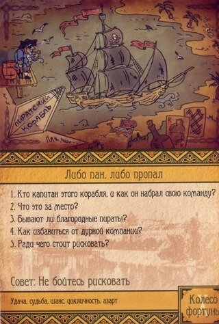 Или вот колода МАК карт "100 дорог", где каждая карта целая жизнь! И ты вытягиваешь одну... Что там? Как её описать? Что она для меня? -Благородный разбойник, любитель путешествий, это шанс и судьба, риск ради Любви! И снова складываются рифмы... Жил-был пират, благородный разбойник, Вёл он корабль по волнам бытия. Там он сражался и с штормом, и с громом, В море встречал он морского царя. Видел и ведьм, и страшных чудовищ, Видел русалок и звёздных кикимр, Путь свой держал в разных он водах, И в океане, и в море бродил. Вёл он корабль сквозь шквалистый ветер, Сквозь лабиринты рифов морских. Так рисковал он с единственной целью - Встретить любовь всей жизни своей. Знал он, что где-то есть Девушка-Солнце, Встретить её дан ему шанс, Если согреет он сердце любовью, А силу Духа с Богом связав. И вот однажды в утренней дымке, лёгкого бриза и солнечных искр, Ехала Девушка в лёгкой лебедке, солнечным светом вокруг осветив. И наш пират сердцем понял, открылся Новому чувст