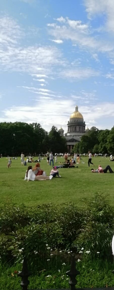 После периода ожидания наступил день отъезда. Как только я вхожу в вагон поезда, сразу начинается радость отпуска. До Санкт-Петербурга поездка прошла хорошо. Поезд прибыл рано утром. Чемодан с вещами был сдан в камеру хранения и началась моя прогулка. Погода в этот день была ясная и солнечная, мне очень хотелось купить экскурсию по городу на двухэтажном автобусе, но в это день проходили какие-то мероприятия и автобусы с утра не ходили. Поэтому решила прогуляться самостоятельно. За день можно осмотреть немного. В первую очередь поехала к храму-памятнику Спас на Крови. Погуляла у канала, зашла внутрь храма. Так же всегда хотела посетить Летний сад, сходила и туда. Хотелось просто ходить и дышать воздухом этого города. Попутно позавтракала в кафе каком-то кафе, прогулялась на речном трамвайчике, добралась до Исаакиевского собора. Зашла на Дворцовую площадь, с удовольствием сфотографировалась с Петром 1, пообедала ещё в каком-то кафе по пути и отправилась на жд вокзал. После