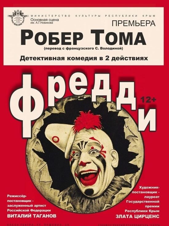 Расписание концертов и спектаклей в театрах и концертных залах Симферополя с 23 февраля по 1 марта СИМФЕРОПОЛЬ КРЫМСКИЙ АКАДЕМИЧЕСКИЙ РУССКИЙ ДРАМАТИЧЕСКИЙ ТЕАТР ИМ. М. ГОРЬКОГО (УЛ. ПУШКИНА, 15. ТЕЛ.: +7 (3652) 27-23-51, +7 (978) 056-15-16) Основная сцена 23 февраля (четверг) 18:00 «ЛЮБОВЬ В СТИЛЕ БАРОККО» 16+ Шутка 24 февраля (пятница) 19:00 «ТЕМНАЯ ИСТОРИЯ, ИЛИ ФАНТАЗИЯ НА ТЕМУ «ЧЕРНОГО КВАДРАТА» К. МАЛЕВИЧА» 16+ Фарс 25 февраля (суббота) 18:00 «ЖЕНИТЬБА БЕЛУГИНА» 14+ Комедия 26 февраля (воскресенье) 18:00 «ФРЕДДИ» 12+ Детективная комедия 28 февраля (вторник) 19:00 «НЕЗАКОННЫЕ НЕВЕСТЫ» 16+ Комедия Камерная сцена 24 февраля (пятница) 19:00 «СЕЙЧАС ИЛИ НИКОГДА» 16+ Комедия 26 февраля (воскресенье) 12:00 «КАВАЛЕРЫ» 14+ Комедия ТЮЗ 26 февраля (воскресенье) 12:00 «КРАСНАЯ ШАПОЧКА И СЕРЫЙ ВОЛК» 4+ Сказка ГОСУДАРСТВЕННЫЙ АКАДЕМИЧЕСКИЙ МУЗЫКАЛЬНЫЙ ТЕАТР РЕСПУБЛИКИ КРЫМ (ПР. КИРОВА, 17. ТЕЛ.: +7 (3652) 25-44-28, +7 (978) 021-71-72) 23 февраля (четверг) 18:30 «МЕЛОДИИ ЭПОХИ» 6+ Симфоническая