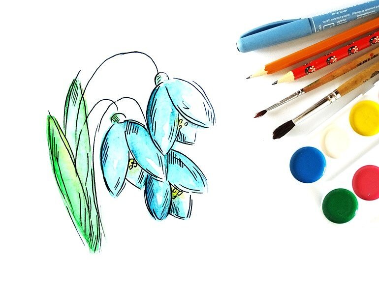 Простые поделки с детьми. Как нарисовать подснежники акварелью