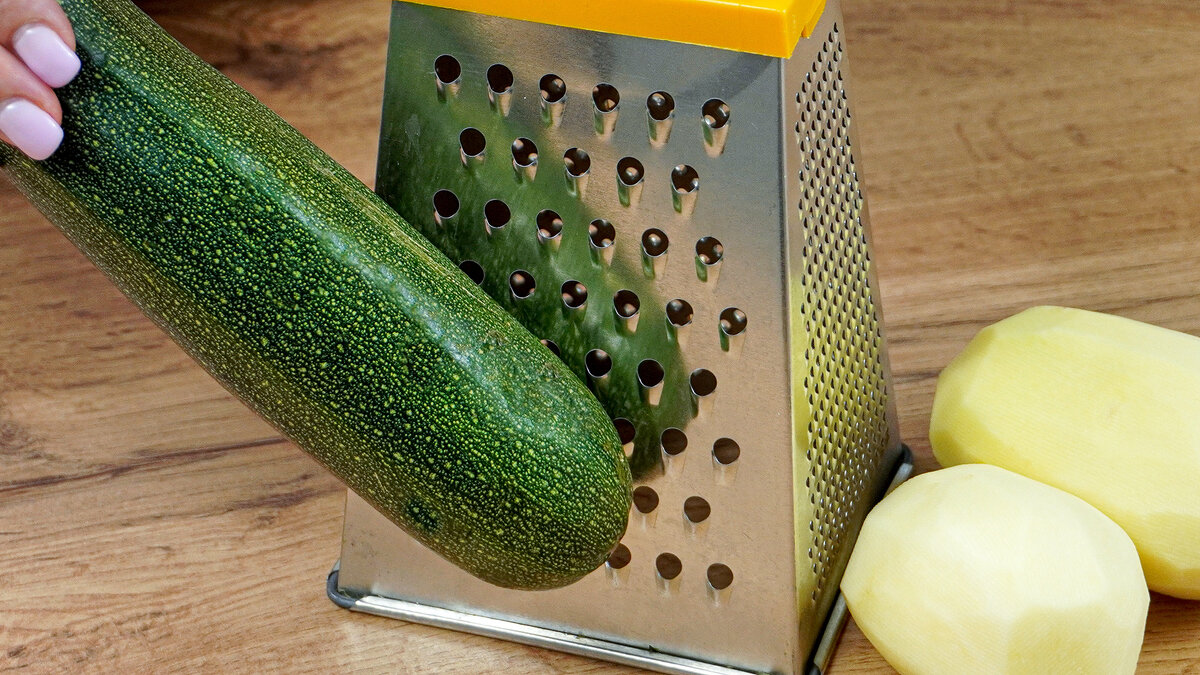Готовим вкусный обед для всей семьи! Просто натрите кабачок и картофель. Очень вкусное и простое овощное блюдо на обед.