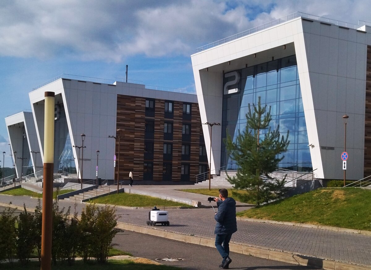 Мы, конечно, не ревизоры Хлестаковы, но курьеров тоже видели. нет, не питерских времен Гоголя, а вот таких, как на фото выше, роботов-курьеров. Наш опнедельник был хоть и тяжелым днем, но чрезвычайно интересным. Казалось, как можно еще насыщенне провести время, чем наши предыдущие дни в Казани и Елабуге? Оказалось можно! Мы снова в автобусном путешествии. за окном красивые пейзажи.