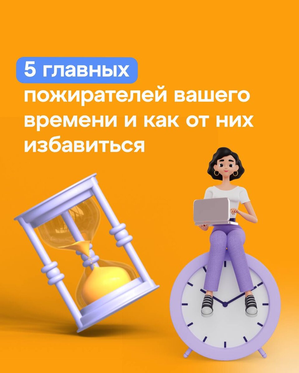 Хронофаги, или пожиратели вашего времени – это всё, что отвлекает вас от работы и мешает быть максимально продуктивным 😱 Список самых распространенных, а также советы, как от них избавиться 👇 Как отличить поглотитель времени от полезных занятий? Очень просто: если ваше занятие не дает полноценный отдых или не приносит пользы – это хронофаг. Вот самые распространённые: 1. Соцсети (если только вы в них не работаете) 2. Просмотр телевизора 3. Беспорядок на рабочем месте 4. Болтовня с коллегами 5. Неэффективные совещания, личные встречи по вопросам, которые можно решить по телефону или онлайн за пару минут Как бороться: Организуйте себя. Позаботьтесь о том, чтобы ваш и рабочий стол компьютера были в порядке: так вам будет легче найти нужную информацию. Планируйте. Разделите список дел на важные и второстепенные. Начинайте с первых, не отвлекаясь до тех пор, пока их не закончите. Кстати, серфинг в соцсетях или любимую игру тоже можно внести в расписание в качестве награды. Ограничьте врем