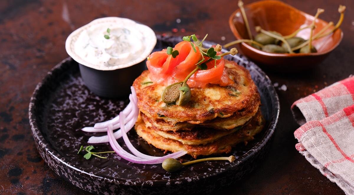 Начинаем с одного из самых популярных в мире вкуса – соленого. Ученые доказали, что соль воздействует на центры удовольствия в мозге, поэтому любовь многих мужчин к таким блюдам понятна и обоснованна. Картофельные оладьи с соленой форелью – вкуснейшее блюдо: картошка мягко оттенит соленость (но не уберет ее) и добавит ароматики. Блюдо гармонично и по соотношению белков, жиров и углеводов и легко может быть и завтраком, и гарниром, и обедом.