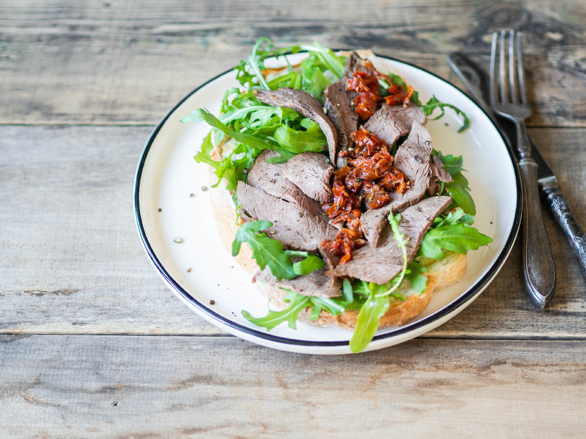 Планирование меню праздничного стола довольно хлопотное дело, так как хочется угодить и порадовать всех кулинарными изысками. Хочется приготовить что-то необычное, но в то же время вкусное. При этом не тратя много времени на приготовление. Предлагаем вашему вниманию один из таких рецептов, брускетты с говяжьим языком, который станет прекрасным украшением любого праздничного стола, даже новогоднего. Такое блюдо прекрасно простоит длительное время, на протяжении всего праздника и даже не заветрится, ведь ломтики языка сбрызнуты вкусным, красивым маслом. Понадобится всего лишь один язык, чтобы накормить целое полчище солдат. В том случае, если вам такое количество не потребуется, можно оставшийся язык добавить в какой-нибудь салатик или же приготовьте жульен. Все компоненты входящие в состав данного блюда можно подготовить заранее, а непосредственно перед праздником взять и поджарить хлеб. После чего аккуратно и в то же время красиво разложить на нем язык и приготовленный соус. Ингредиент