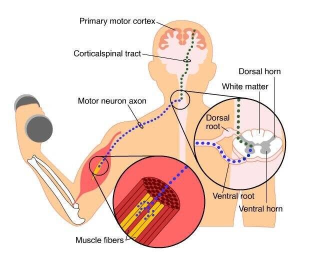 Сокращение мышцы так же начинается с нервного импульса в головной мозг.