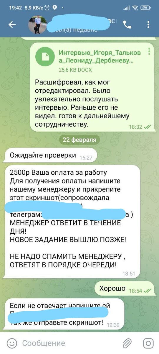 Все начиналось красиво. Зашел на агрегатор вакансий, откликнулся на вакансию "Копирайтер", дальше общение пошло в ТГ все было спокойно и без подозрений, договорились об обязанностях и оплате за работу. Работа заключалась в расшифровке видео в текст. Я по образованию журналюга и есть опыт в сфере обработки и редактирования текстов, аудио и видео. Мне прислали ссылку на видео: интервью Талькова Леониду Дербеневу. И тут я подумал, а для чего столь старое интервью нужно расшифровывать? Ну да не суть. Если хотят пусть, мне не сложно, ведь обещали не плохую сумму за пару часов работы. Выполнил задание, отправил и тут начиналось самое интересное. Меня перенаправили на менеджеров по выплатам. Написал менеджеру и немного подождал ответа. В сообщении мне прислали ссылку для получения зп за выполненное задание. Перехожу по ссылке и вижу что нужно ввести все данные карты и выплата больше похожа на оплату операции и перевод средств с моего счета. Да мне написали, что это идентификация, верификаци