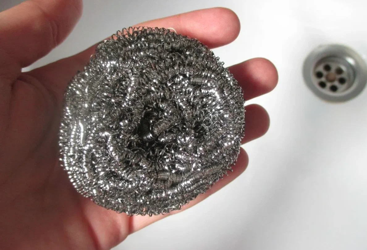 У меня дома всегда есть запас металлических губок. Это недорогое приспособление способно заметно облегчить быт. Хочу поделиться с вами 8 оригинальными способами использования "ежиков", которые не связаны с мытьем посуды. Надежный фильтр При мытье головы или купании домашних питомцев, волосы или шерсть могут попасть в слив. Этого не произойдет, если заткнуть металлической губкой сливное отверстие. Борьба с ржавчиной Чтобы вернуть крану первоначальный блеск, достаточно пройтись по его поверхности губкой. Затем протереть салфеткой из микрофибры и готово! Чистка овощей Металлическая губка легко справляется с чисткой овощей. Металлический ежик способен "срезать" более тонкую кожуру с молодой картошки или моркови, нежели овощерезка. Ценный лайфхак позволяет сэкономить время и семейный бюджет. Быстро почистить рыбу Губкой из металла также можно почистить рыбу. Как и в предыдущем случае подойдет жесткая губка. Домашняя заточка ножниц Элементарный лайфхак, для которого нужна всего одна губка